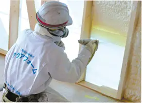 吹き付けると膨らむ特殊な断熱材を使用。 従来の断熱材では防げなかった小さな隙間も完全にシャットアウトします。